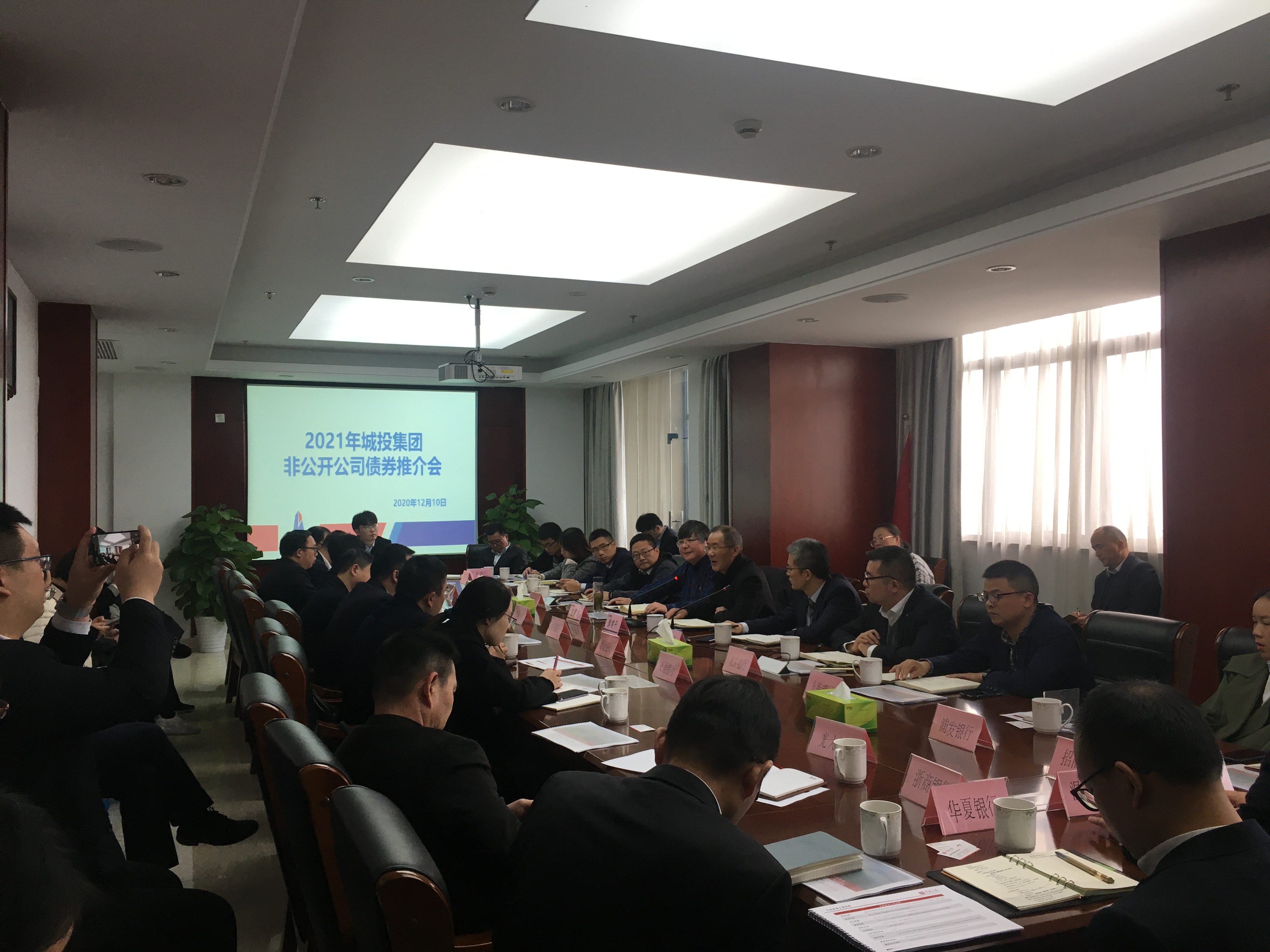 12月10日上午,建設集團在五樓會議室召開城投集團2021年非公開公司債券推介會。集團董事長滕建平、副總經理包震東、華安證券債券總經理陳紹山以及工商銀行、農業銀行、中國銀行、建設銀行、交通銀行等24家銀行有關代表和華安證券項目組共50余人參加會議。